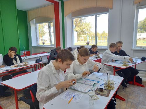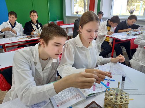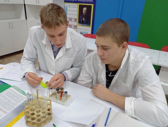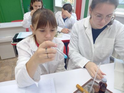 На базе Центра "Точка роста" в химической лаборатории с обучающимися 9 класса было проведено практическое занятие по теме "Изучение свойств серной кислоты". На занятии ребята закрепили знания о свойствах серной кислоты, продолжили формировать навыки практической работы с реактивами и совершенствовать умения обращаться с кислотами, научились способам распознания серной кислоты и ее солей.