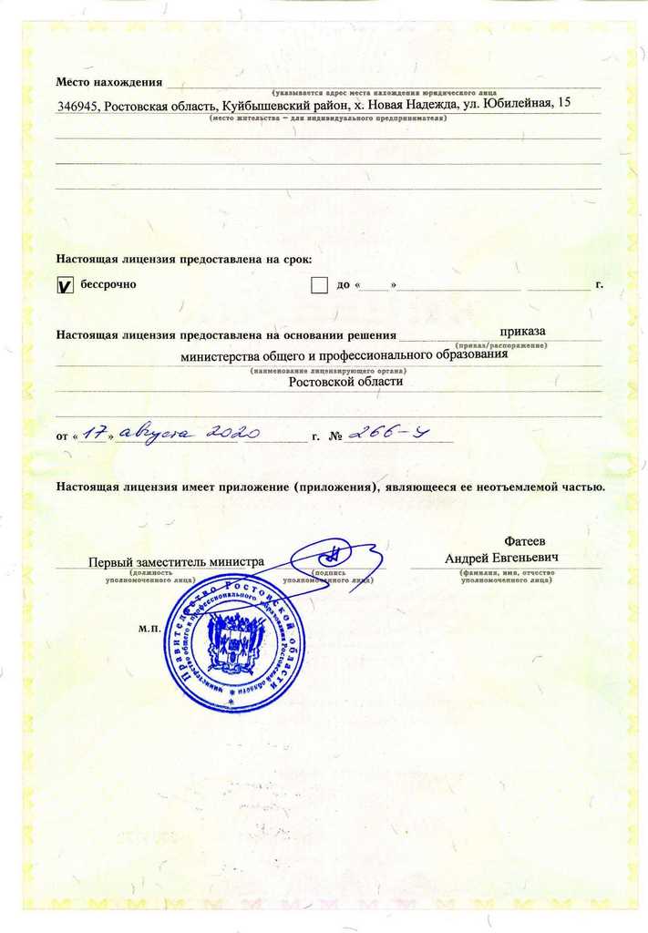 Настоящая лицензия предоставлена на основании решения приказа