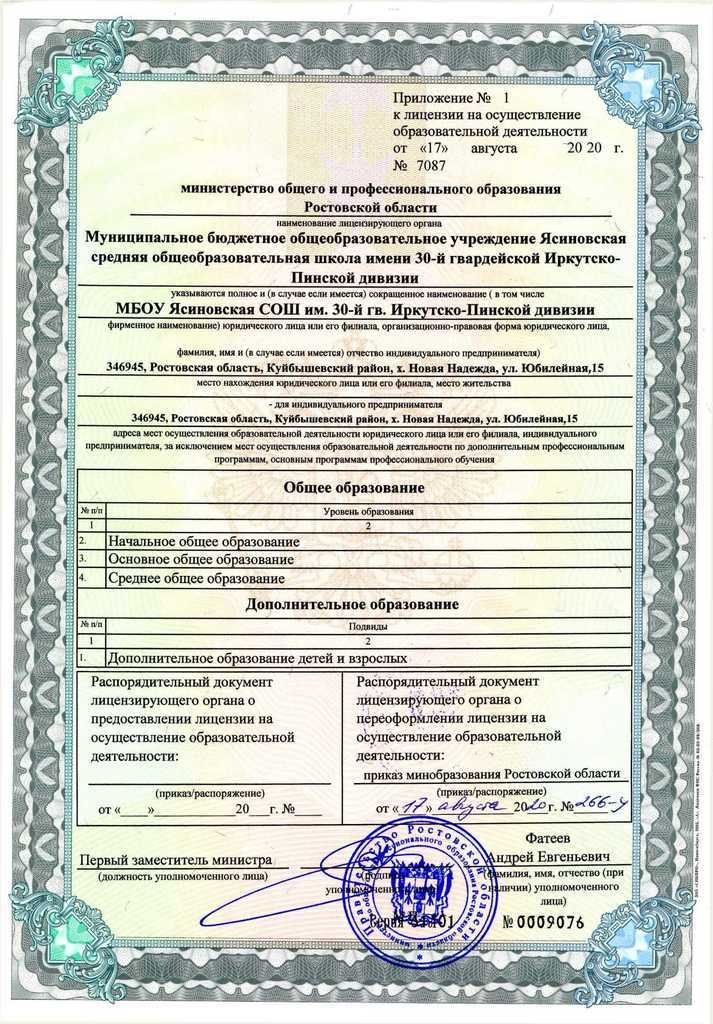 общеобразовательному учреждению Ясиновской