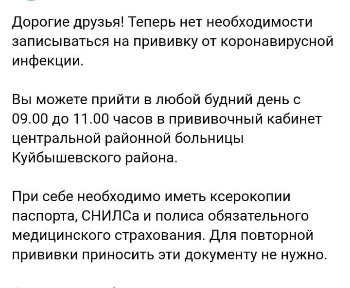 В Куйбышевском районе продолжается прививочная кампания от COVID -19.