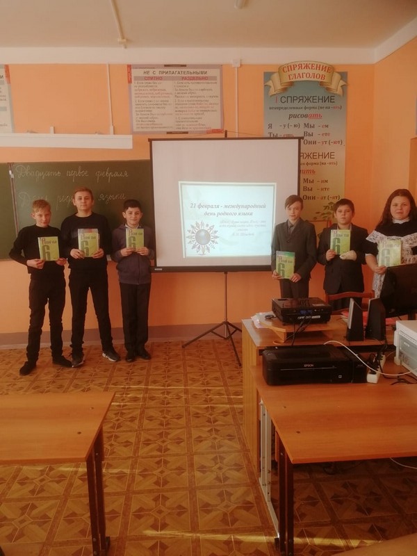 В 6 классе проведена игра КВН «Родной язык - неиссякаемый родник». Учитель русского языка Максимова О.Н. познакомила обучающихся с историей праздника. Две команды соревновались друг с другом. С большим удовольствием отвечали на вопросы, отгадывали ребусы.