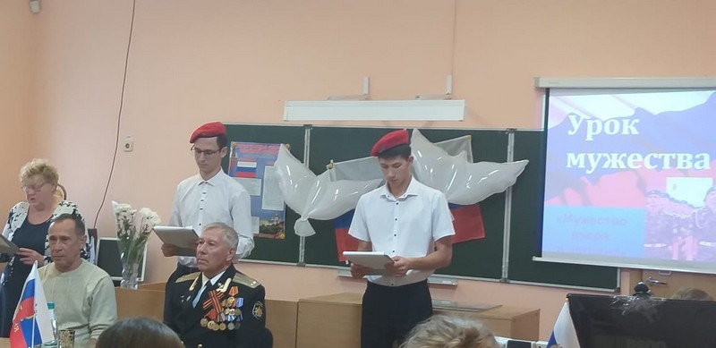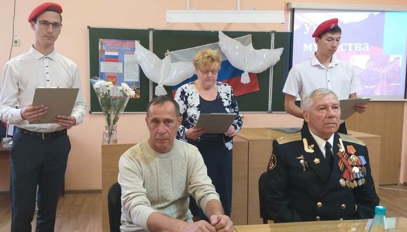 В ноябре месяце в МБОУ Ясиновской СОШ им. 30-й гв. Иркутско-Пинской дивизии был проведён урок мужества «Подвигу всегда есть место на земле». На мероприятие были приглашены подполковник запаса, бывший штурман авиации Северного флота, а ныне председатель совета ветеранов Куйбышевского района Иван Андреевич Копайгора и председатель Матвеево - Курганской районной общественной организации ветеранов боевых действий «САЛАНГ» Ташпулатов Виталий Акбарович. Гости урока мужества прошли через многое, доказав свою верность Родине и в ратном подвиге, и в каждодневном доблестном отношении к своему воинскому долгу. Иван Андреевич рассказал о службе на северных рубежах Родины, демонстрируя фотографии из армейского альбома. Ребят очень заинтересовали модели вертолётов, на которых летал штурман Копайгора. Они узнали и о множестве самых разнообразных задач, которые приходилось решать экипажу, и о том, из каких сложных ситуаций вертолётчики выходили победителями. Бывший воин – интернационалист В.А.Ташпулатов рассказал присутствующим о боевых действиях наших войск в зоне специальной военной операции. Виталий Акбарович поведал о подвигах простых и порой совсем юных парней. Он сказал: «Они разные по национальности, но жители огромной страны, имя которой - Россия! А россияне не раз доказывали, что умеют отстаивать свои интересы, и единым для всех является лозунг: «Наша сила в правде!»».